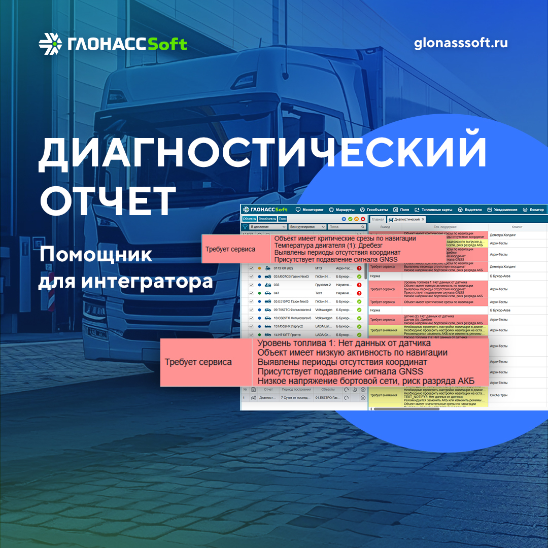 Перейдите на надёжную отечественную платформу уже сегодня! Узнайте больше о возможностях ГЛОНАССSoft и получите консультацию специалиста отправив запрос на почту info@glonasssoft.ru или позвонив по номеру 8-800-700-82-21