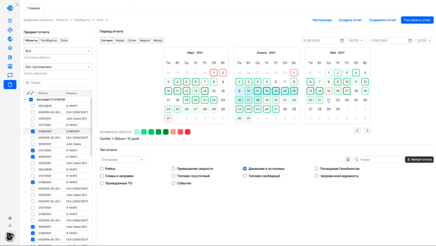 Более 20 преднастроенных аналитических отчётов позволяют осуществлять контроль движения, расхода топлива, времени простоя, возможных сливов и других ключевых показателей эффективности. При необходимости возможно создание собственного отчета с необходимыми колонками в конструкторе отчетов.