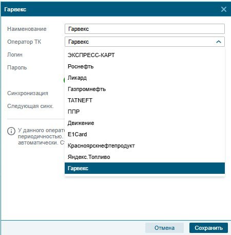 Интеграция с 11 операторами топливных карт. Возможность выявлять и предотвращать сливы, недоливы, мошенничество при заправке. Список операторов ТК постоянно расширяется.
